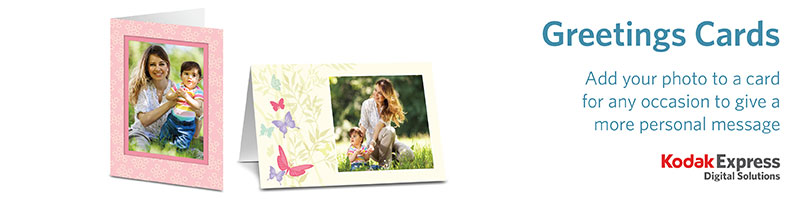 Whether it’s a birthday, wedding, arrival of a new born or a special occasion for someone special, our state of the art software online and in store lets you create a very unique personalised greeting card by simply adding your favourite photo. You can also add text, choose from a huge range of different designs for any occasion such as Mother’s day, anniversary or valentine’s day to mention of few. Our greeting cards are available in different sizes ranging from a small 6x4 inch to 8x6 inches flat greeting cards to 7x5 inch double sized folded greeting card.